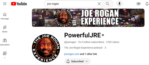Step 2. Then you will find ‘PowerfulJRE‘ from the top result. Please click on it to find and watch all his episodes.